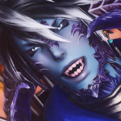 Batsaikha is... real big, real blue, with a prehensile tail, and two rows of very sharp teeth. He might just be a fish in a Xaela suit, and isn't exactly the most complex individual!He is generally so nonchalant and playful with those in his circle but he might tend toward being unsympathetic and cruel with folks that don't sit right with him, especially if these individuals intend to bring harm to his people.That being siad, Batsaikha is very confident in his (totally unrefined) abilities as a fighter, because clearly, fighting actual people is just the same as spear or bow-fishing.